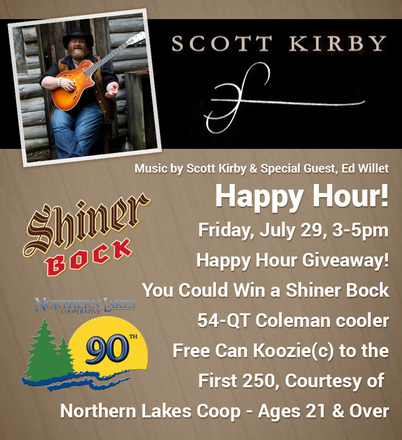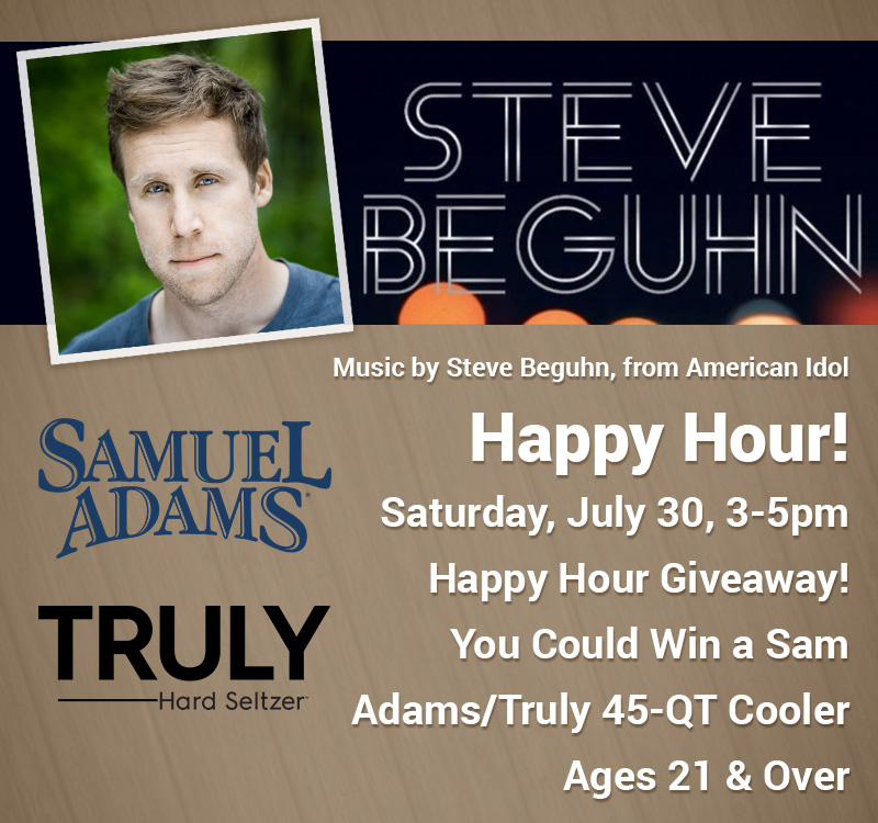 - 3:00pm-5:00pm – Happy Hour & Live Music in Swinging Axe Beer Garden by Steve Beguhn, American Idol Finalist